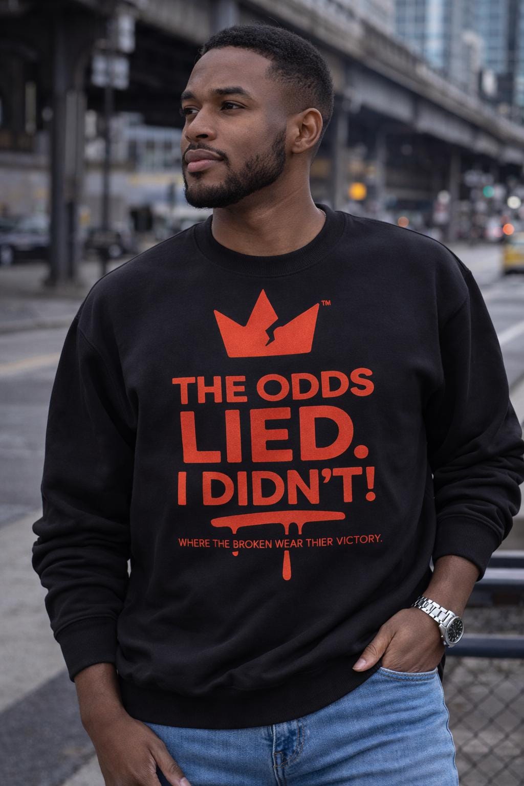 This shirt isn’t just fabric — it’s a statement. “The Odds Lied. I Didn’t!” represents resilience, triumph, and truth. The bold cracked-crown logo symbolizes strength through struggle — a reminder that broken doesn’t mean defeated.