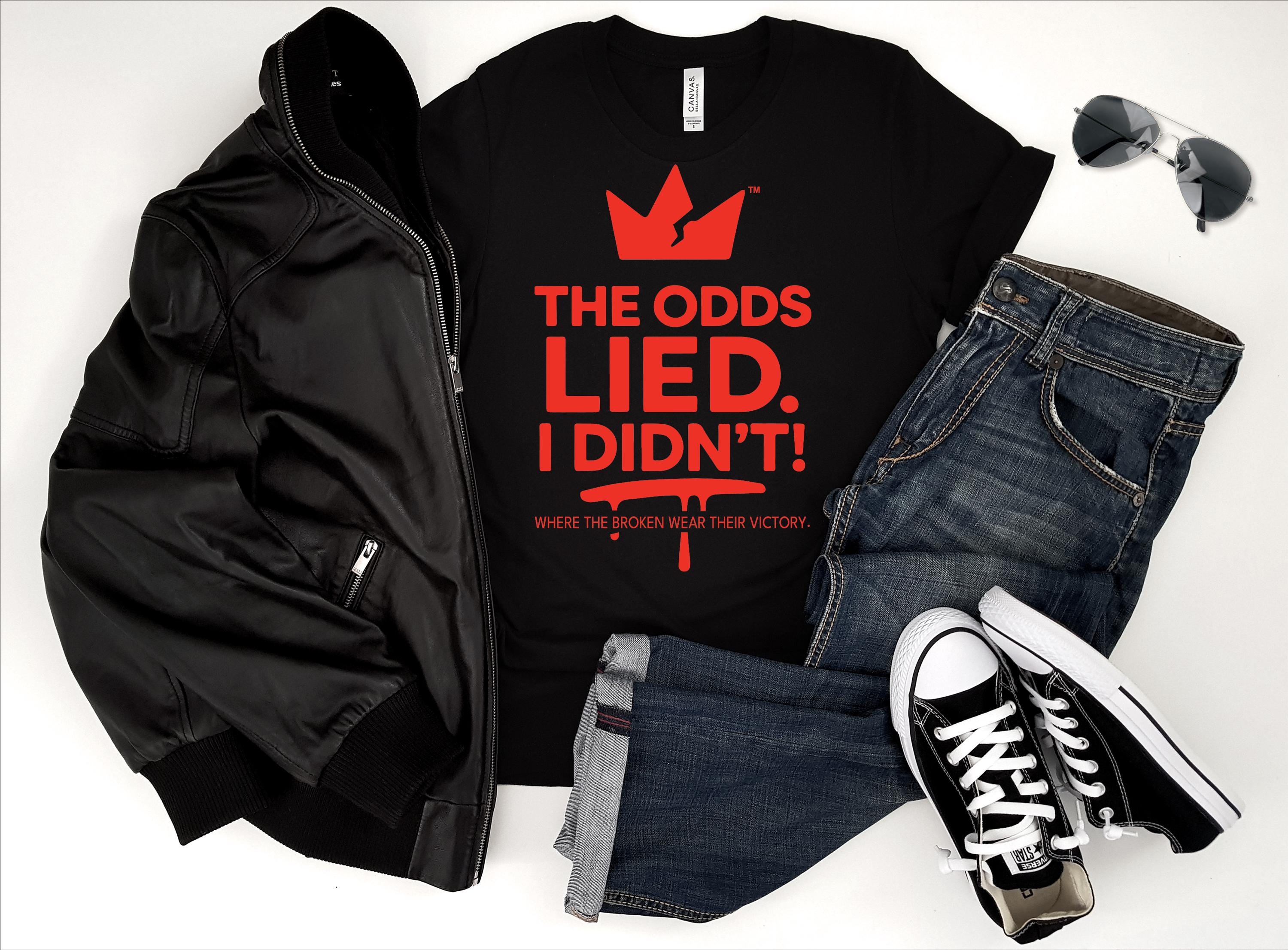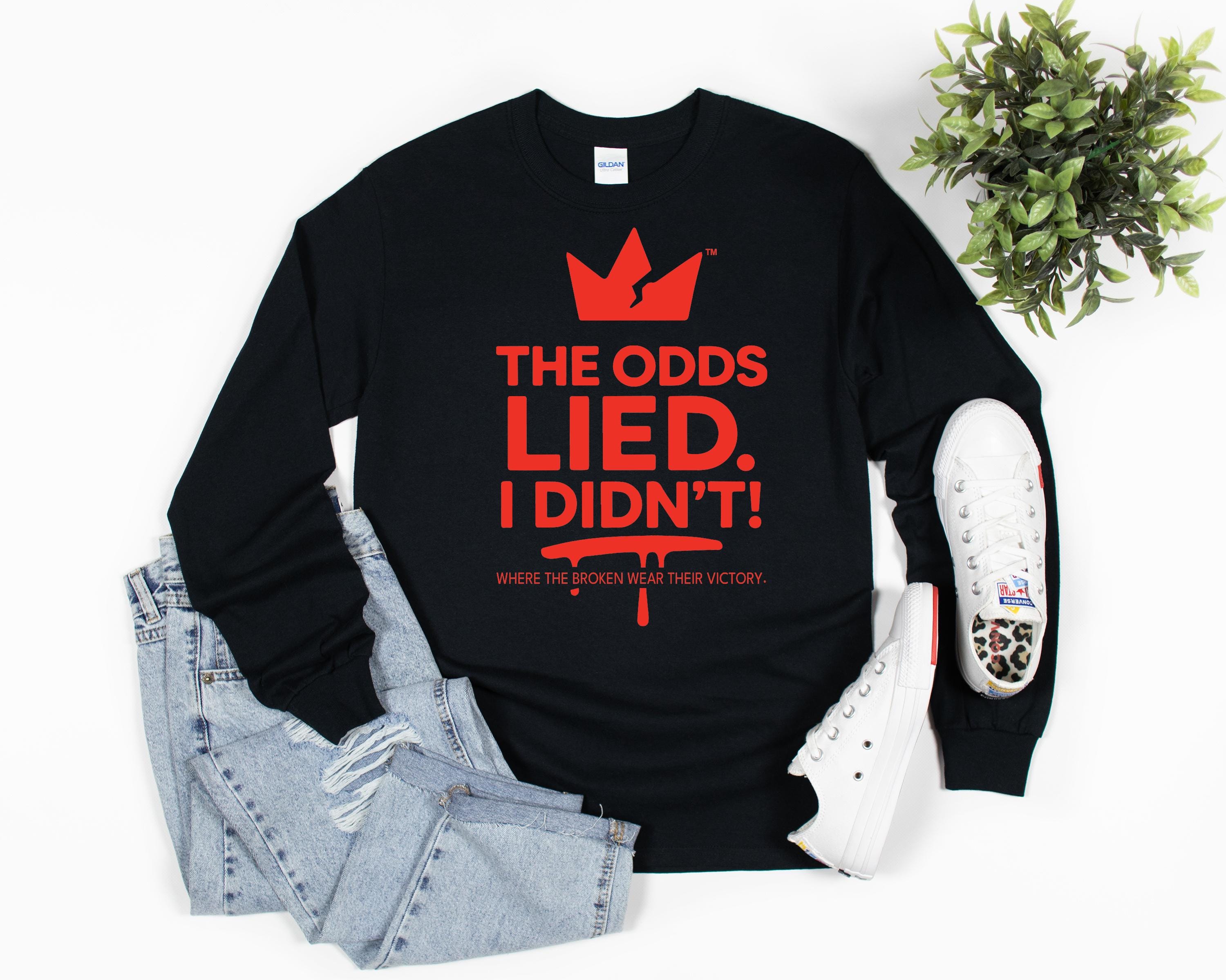 This shirt isn’t just fabric — it’s a statement. “The Odds Lied. I Didn’t!” represents resilience, triumph, and truth. The bold cracked-crown logo symbolizes strength through struggle — a reminder that broken doesn’t mean defeated.